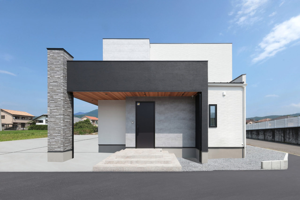 ホワイトベースにブラックや石材をアクセントに使用した外観🏡