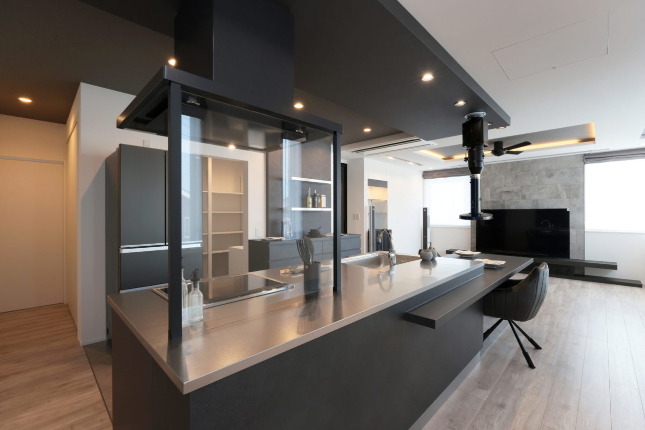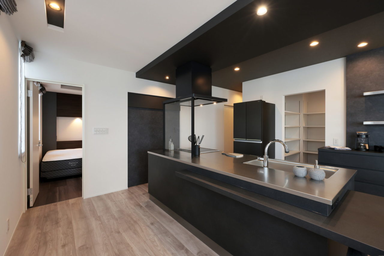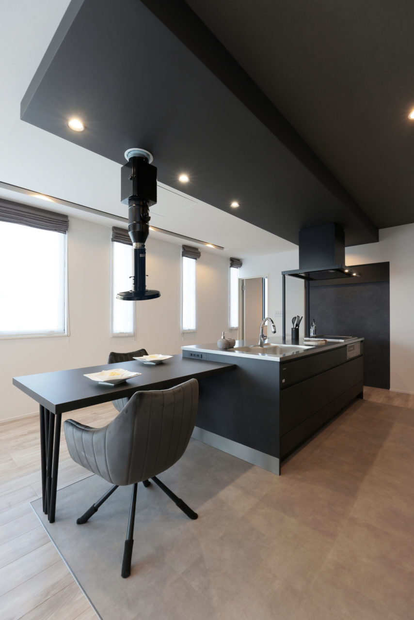 室内はブラック×ホワイトでシンプルにまとめ上げ