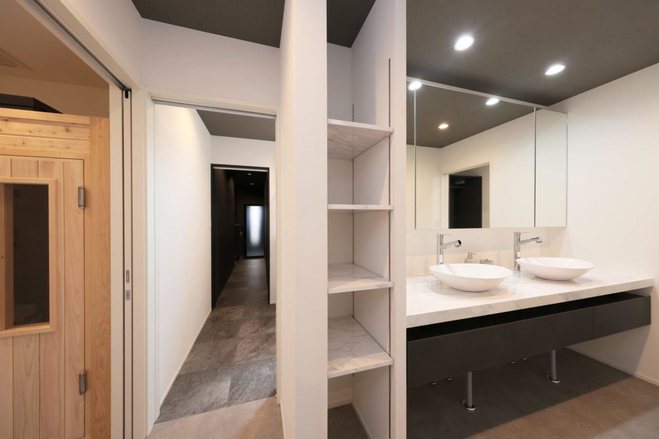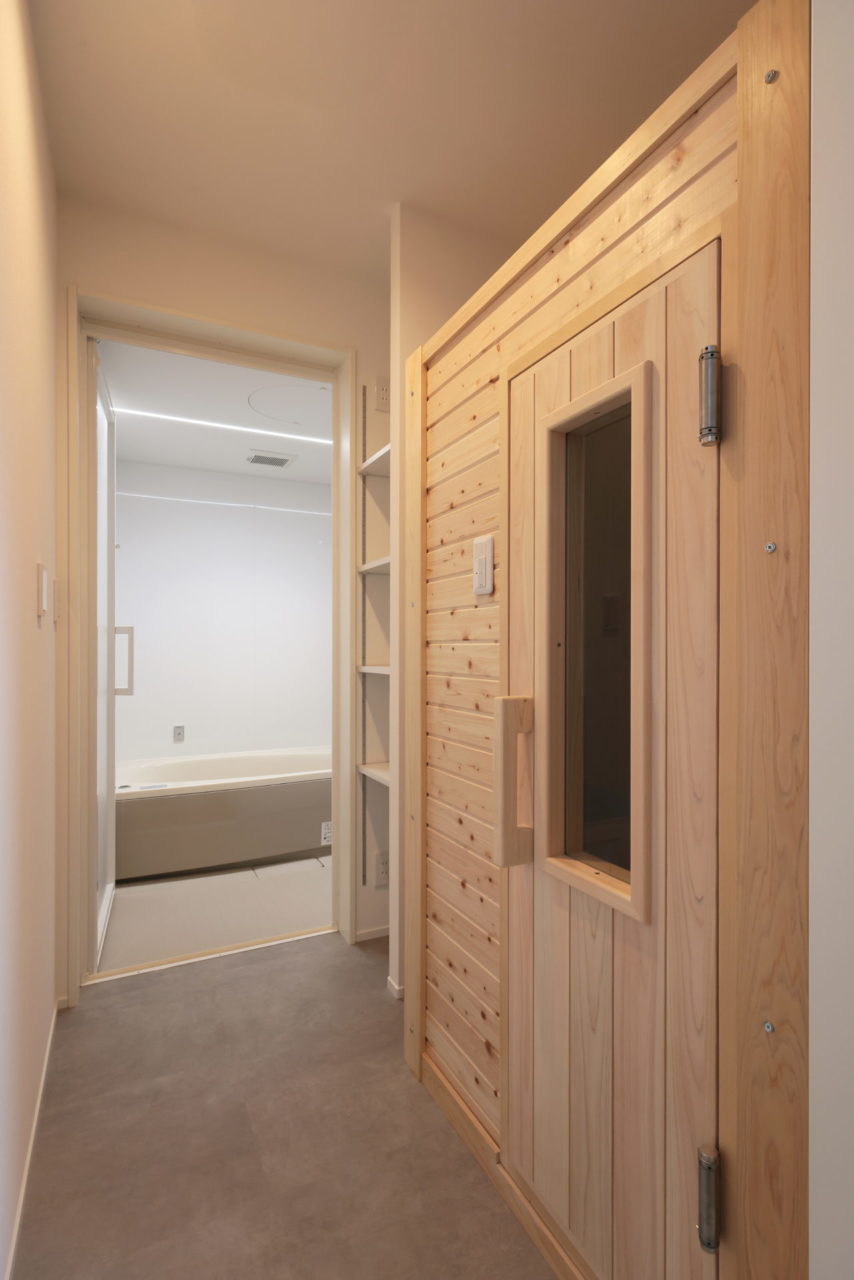 リビングを抜けると水廻りとサウナルームがあり
